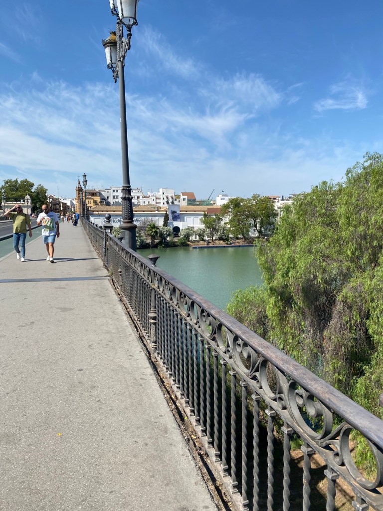 Endeleg fekk eg ryggsekken! Nydeleg å få den telefonen frå flyplassen! Kunne starte frå Sevilla kl 11. Kryssing av elva Guadalquivir over brua Triana, og vidare retning Camas og Santimonce. Kun 1 mil med vandring i dag, og det var meir enn nok, kjende eg. Det var varmt, og hardt underlag. Mykje asfalt og harde fortau. Minnast muskelstølheita vi hadde på første etappe då eg gjekk Camino Frances. Når eg overlevde og vende meg til det då, så går det vel bra denne gongen også.