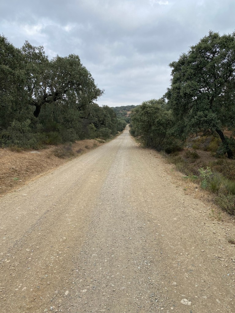 Nydeleg tur på 13,7 km. Opp kl 5.30, frukost på ein bar før «avgang». Vegen gjekk fortsatt gjennom naturalparken, med store kork-tre, nydeleg underlag: berre grusveg, opp- og ned, så veldig variert. Vakkert landskap.