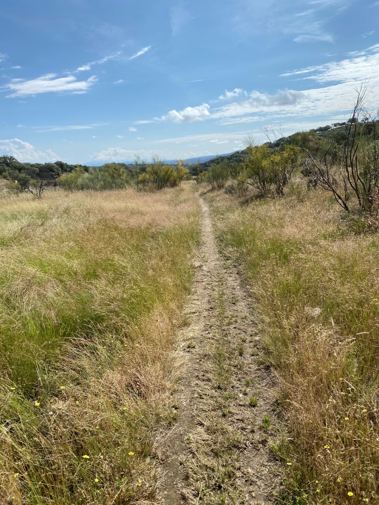 Eg har gått gjennom furuskog, carob-skog, beitemark og utmark. Gjennom ørten grindar. Alt på nydeleg underlag.