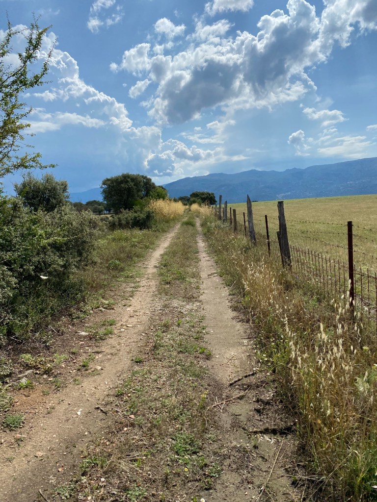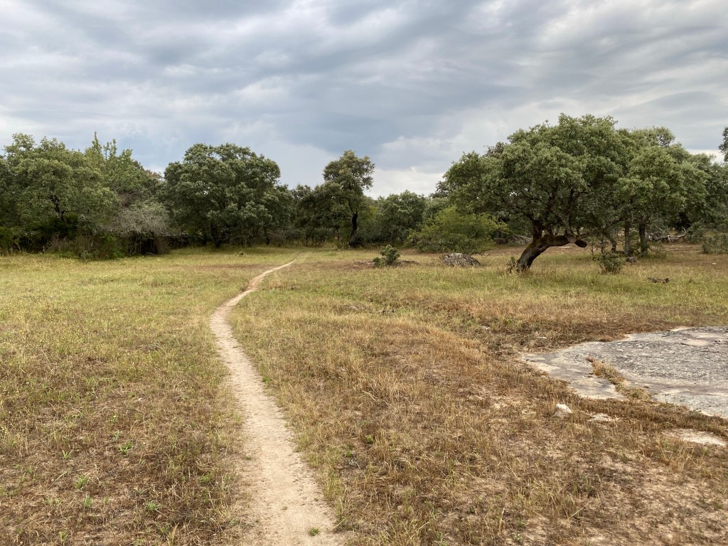 Lang etappe i dag. Hadde planlagt å gå til Oliva de Plasencia, men der var ingen ledig overnattingsstad. Då blei Hostal Asturias i Cáparra eit godt alternativ.