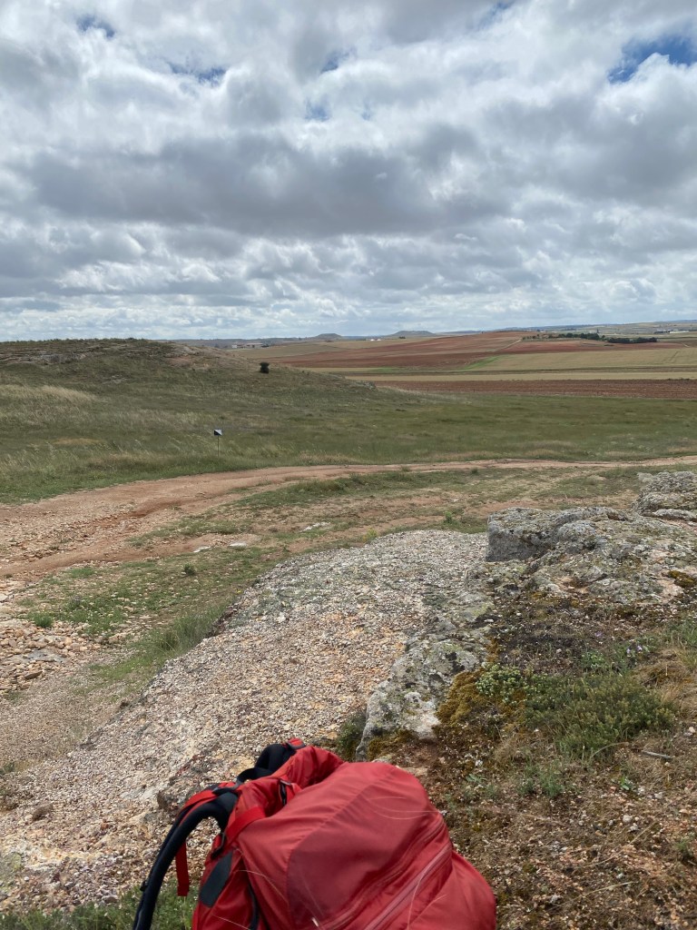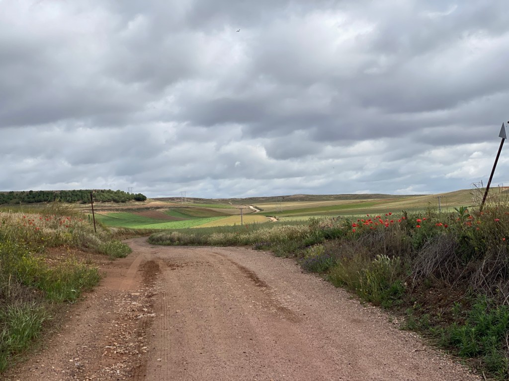 Også på dagens etappe hadde eg selskap av tyske Georg. Skikkeleg surt og kaldt, kald vind. Etappen blei unnagjort utan å ha ete frukost. Avtalen med eigar av baren i San Pedro var at dei skulle opne kl 7.30. Men der kom ingen! Skikkeleg ergerlig! Ein liten muffins og ein halv banan var det vi gjekk på, til vi fekk kvar vår yoghurt av våre koreanske caminovener i Morille. Energinivået var ikkje særleg høgt, men kom seg litt etter ein pause med ny banan👍🏻