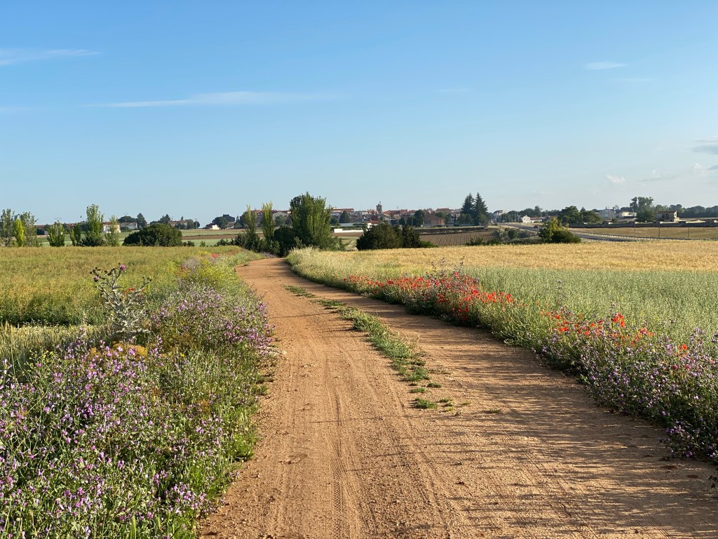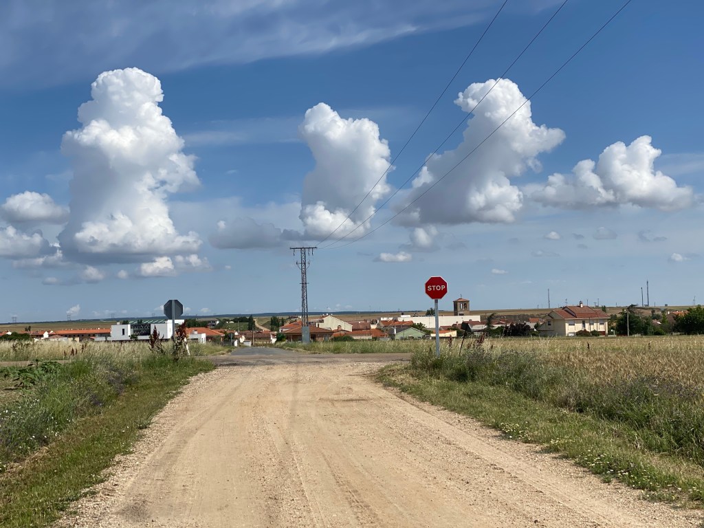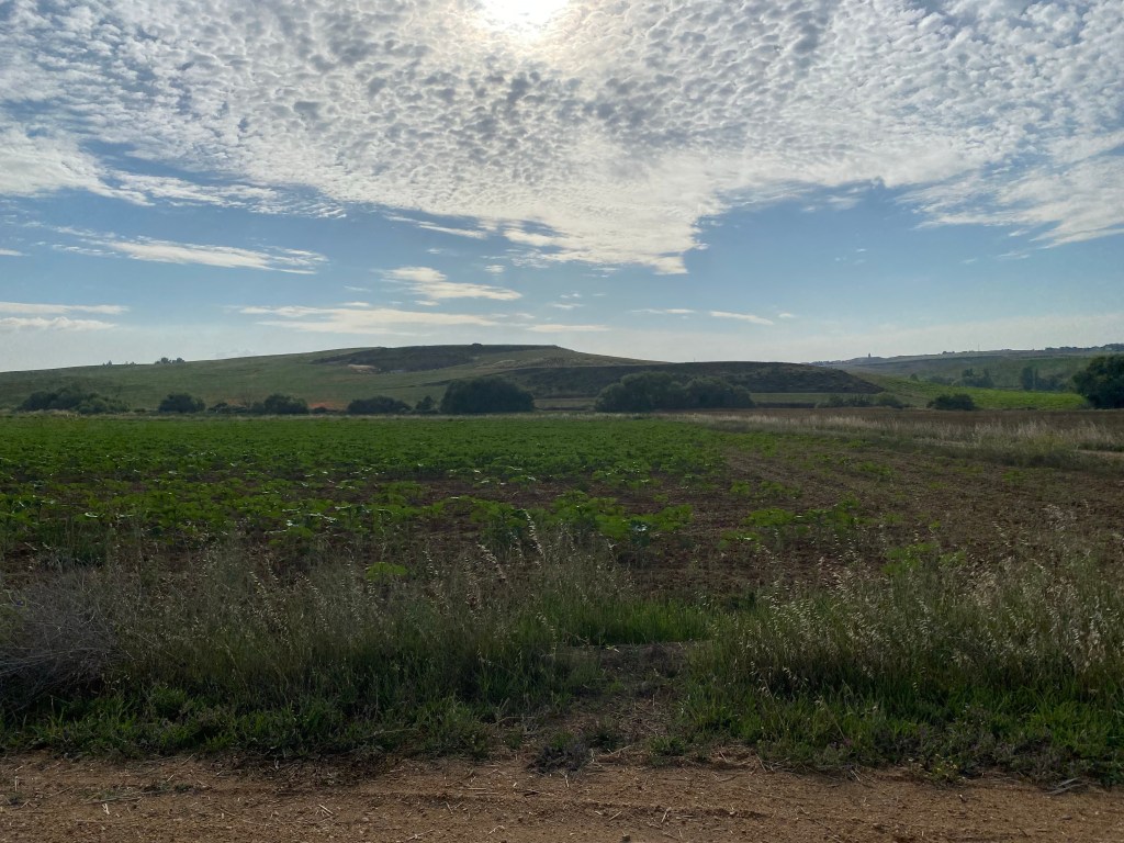 Klarte å innbille meg at eg hadde gått feil undervegs, fordi vegen stemte ikkje med GPS for Caminoen. Gjekk ca 1 km tilbake for å sjekke pilene, men fann at eg hadde gått rett i høve dei. Stansa ein mann på traktor og spurte for sikkerheits skuld. Jau, eg var på rett veg🙏🏻 Fullstendig bortkasta, men slik er det når teknologien spelar oss eit puss.