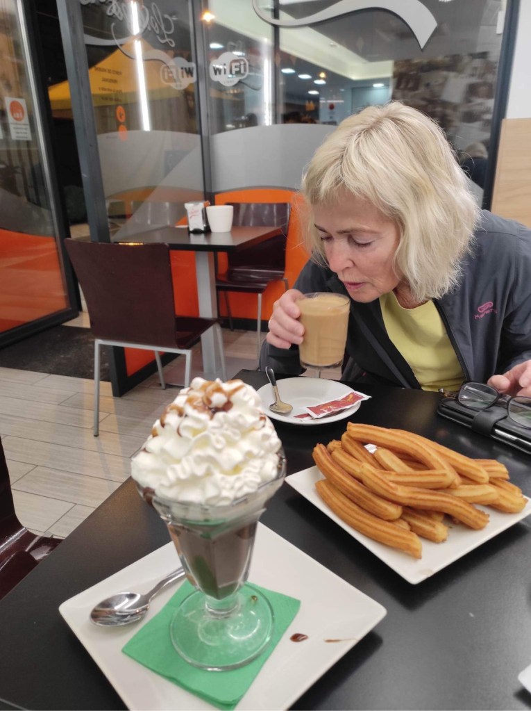 Vi starta tidleg i dag, forlot hostalet kl 6, for å komme lengst mogeleg før den varsla varmen kom. Frukost på Churreria, det blei ingen toast i dag, vi måtte pent klare oss med churros😅