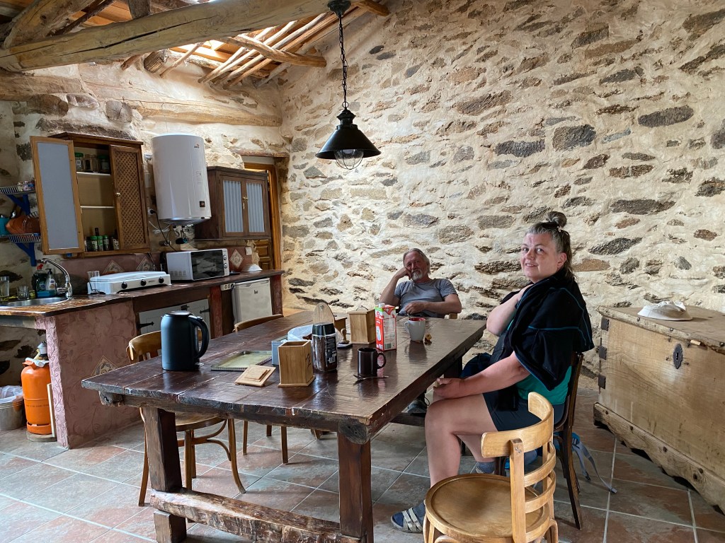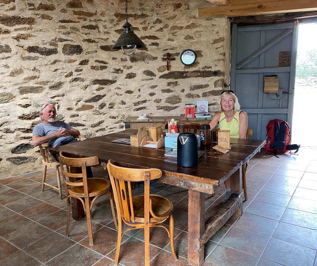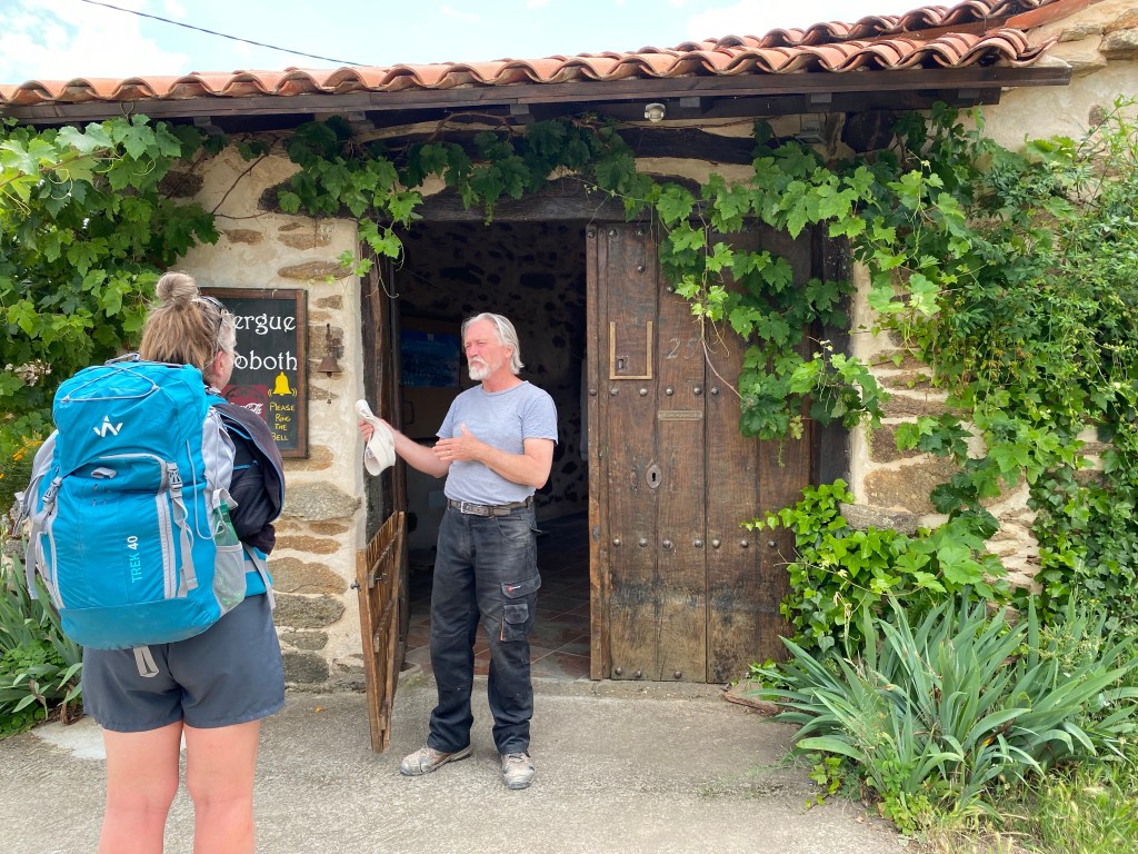 I ein lite pueblo, Villar de Farfon, stoppa vi på Alberguet der og drakk kaffi. Hyggeleg møte og prat med Creg, eigaren, frå Sør-Afrika. Nydeleg lite Albergue.