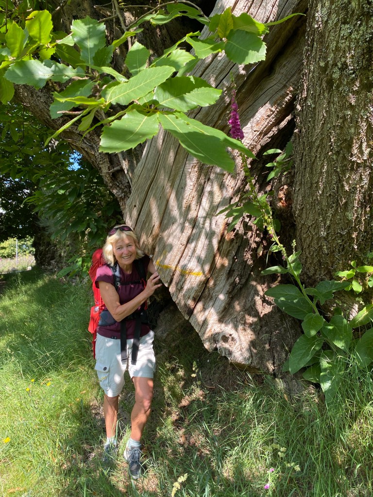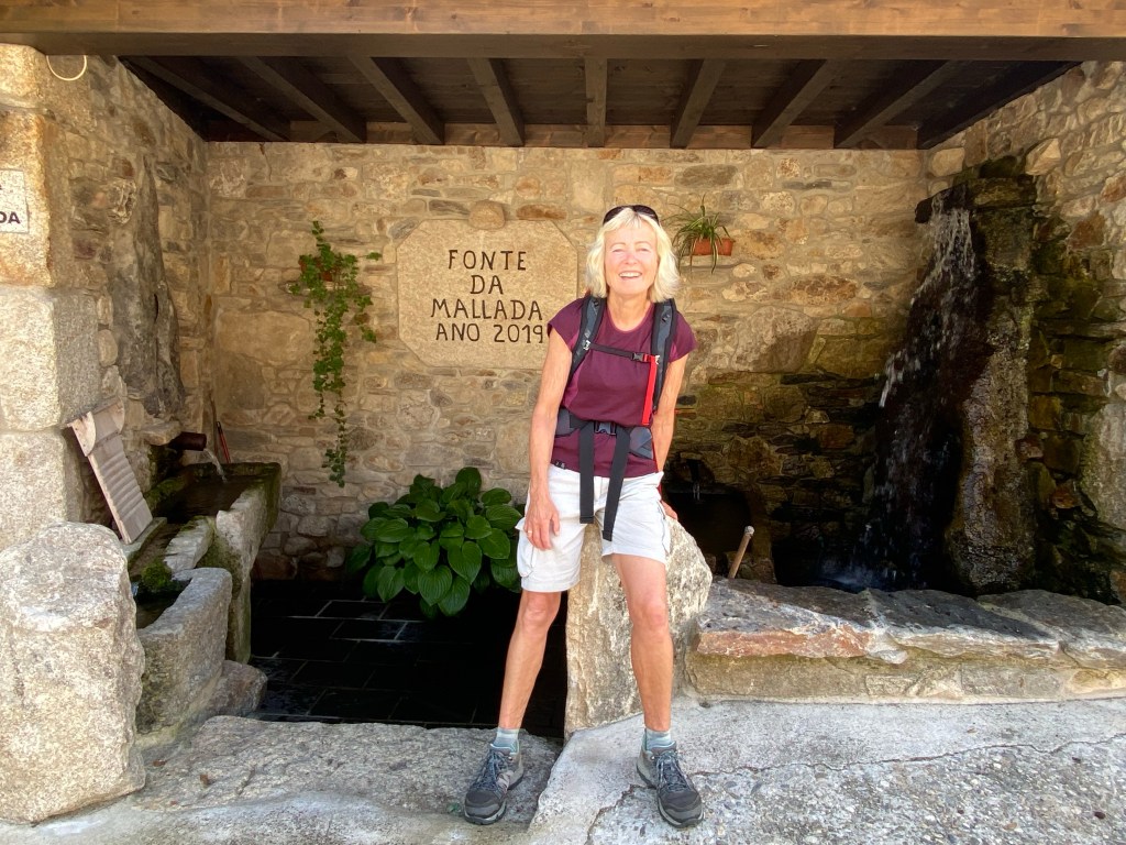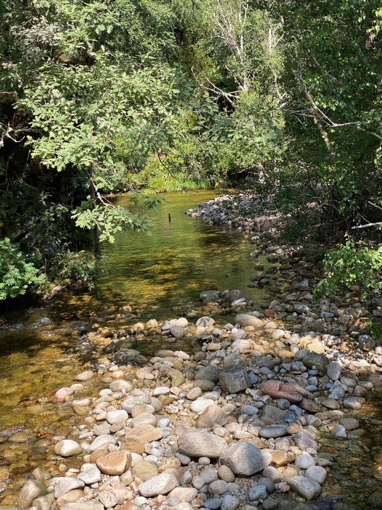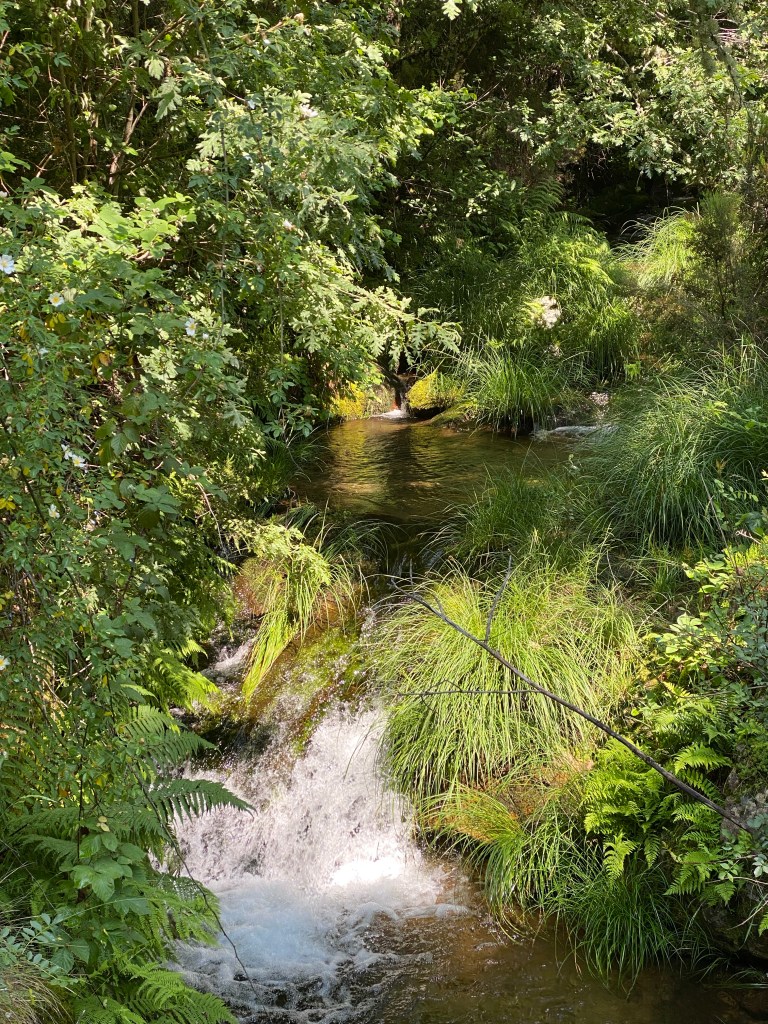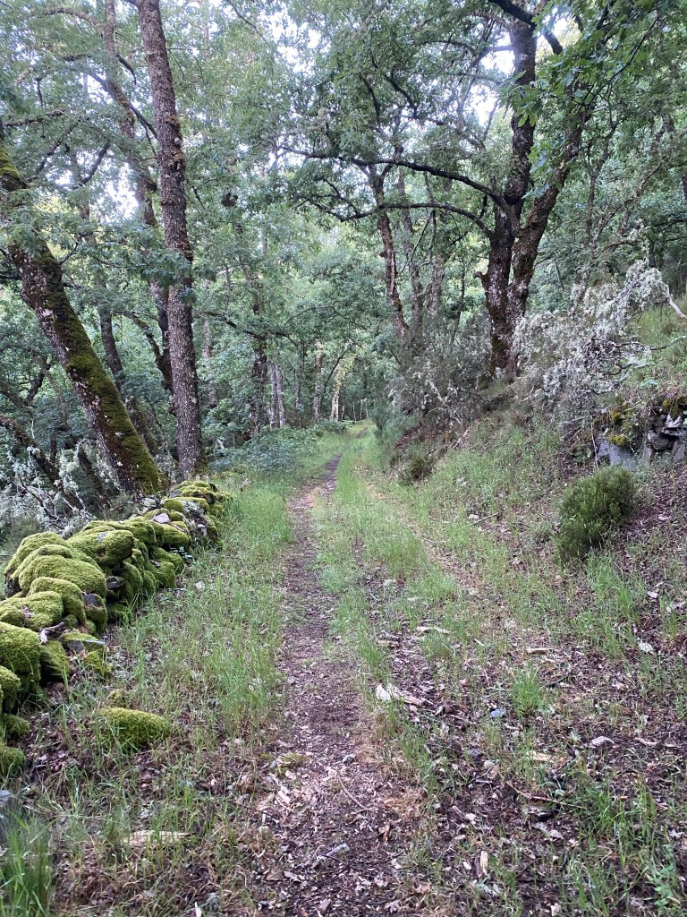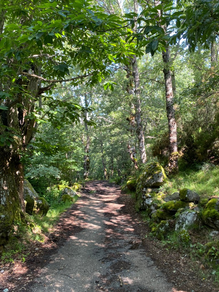 Det har vore ein fantastisk vandredag. Gjekk etter dei gule pilene i lag med Jian og Jey, dei andre gjekk bilvegen. Turen gjekk gjennom frodig natur, mykje bjørkeskog, faktisk, og eikeskog. Og det har vore sildrande bekkar overalt. Minte meg veldig om heime, her eg gjekk. Rennande vatn har eg ikkje sett mykje av så langt på turen. Men no er vi i høgda. Starta på 991, gjennom eit pass til 1363 (som er denne Caminoen ditt høgaste punkt) og så ned til Lubián, på 1020. Det merkast at vi er i fjella. Kjølegare både på dag- og nattestid.