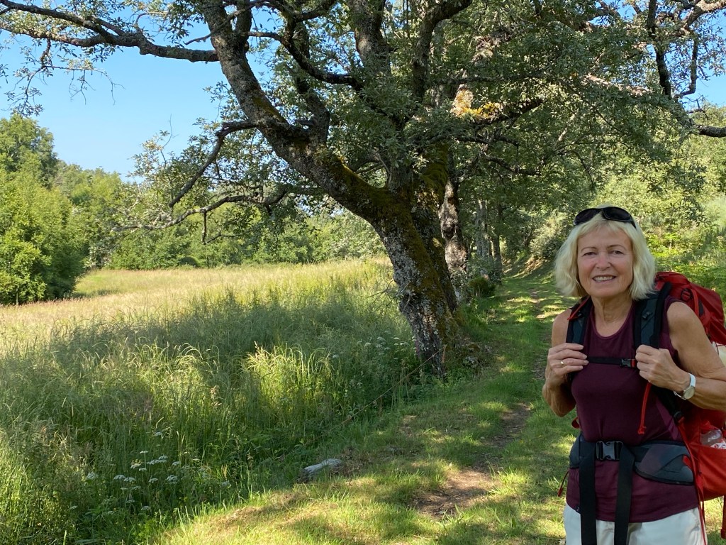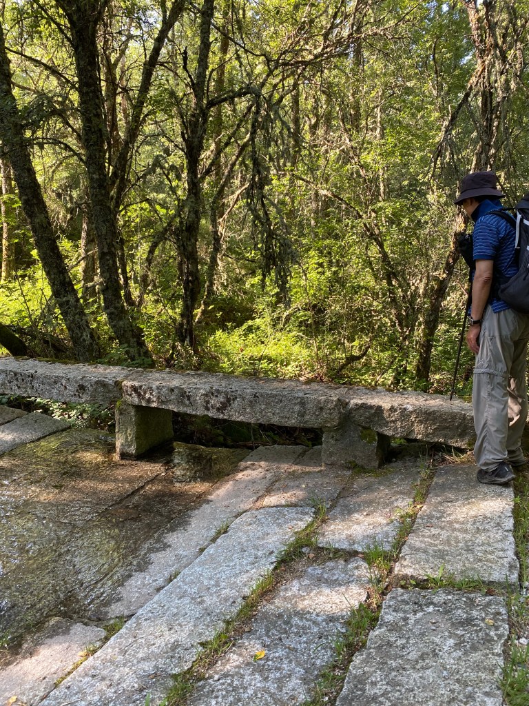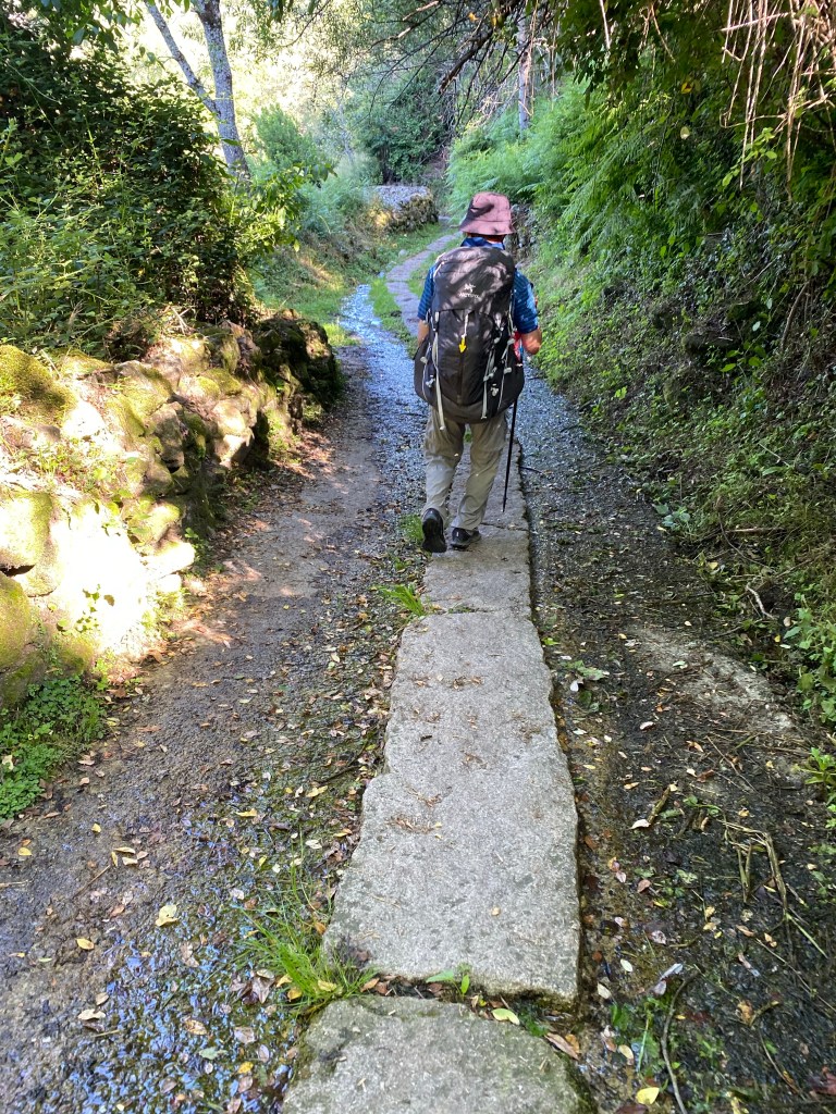 Dagens vandring i strålande sol, har vore heilt fantastisk. Så variert! Nydelege stiar, med unntak av nokre våte delar. Vakker natur, frå skog, fjell og opne vidder. Gjennom mange koselege, små landsbyar. I tillegg til meg og mitt turfølge, har vi hatt god kontakt med dei fire spanske søstrene, og to spanske menn. Til saman 10 nokolunde samla som gjekk denne etappen i dag.