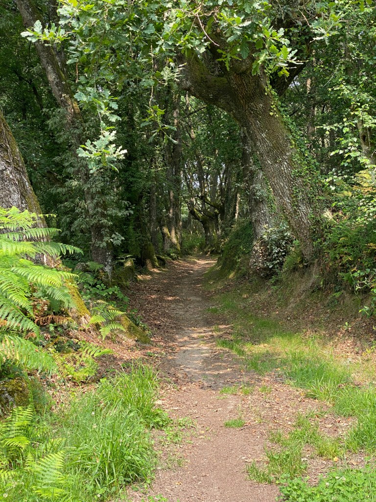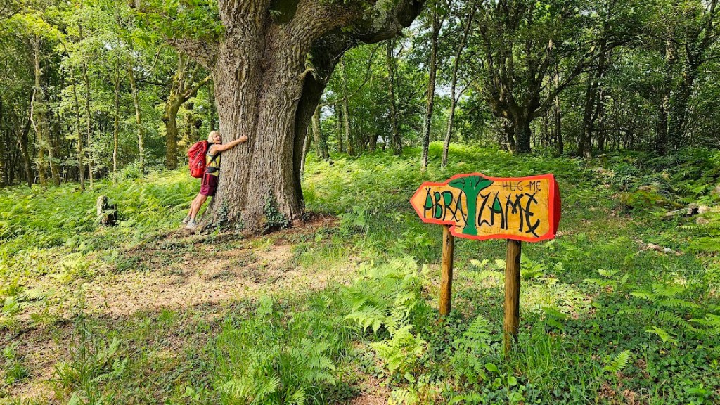 Flott natur, nedstigning frå Albergueria, gjennom veldig gammal eikeskog på siste del.