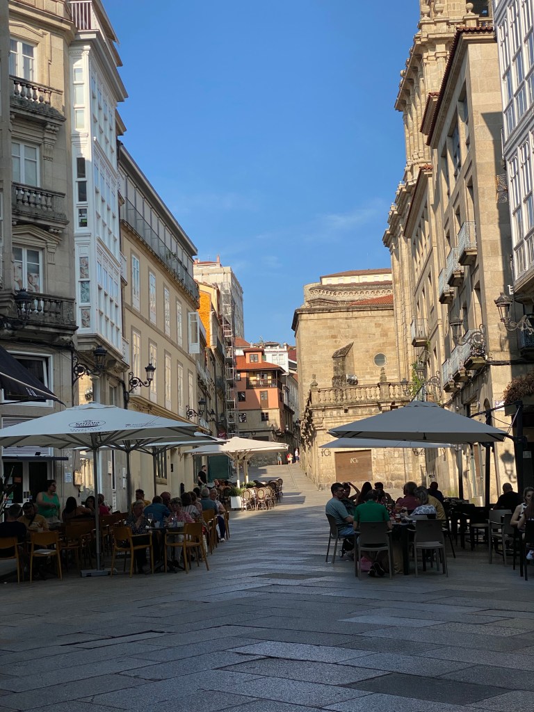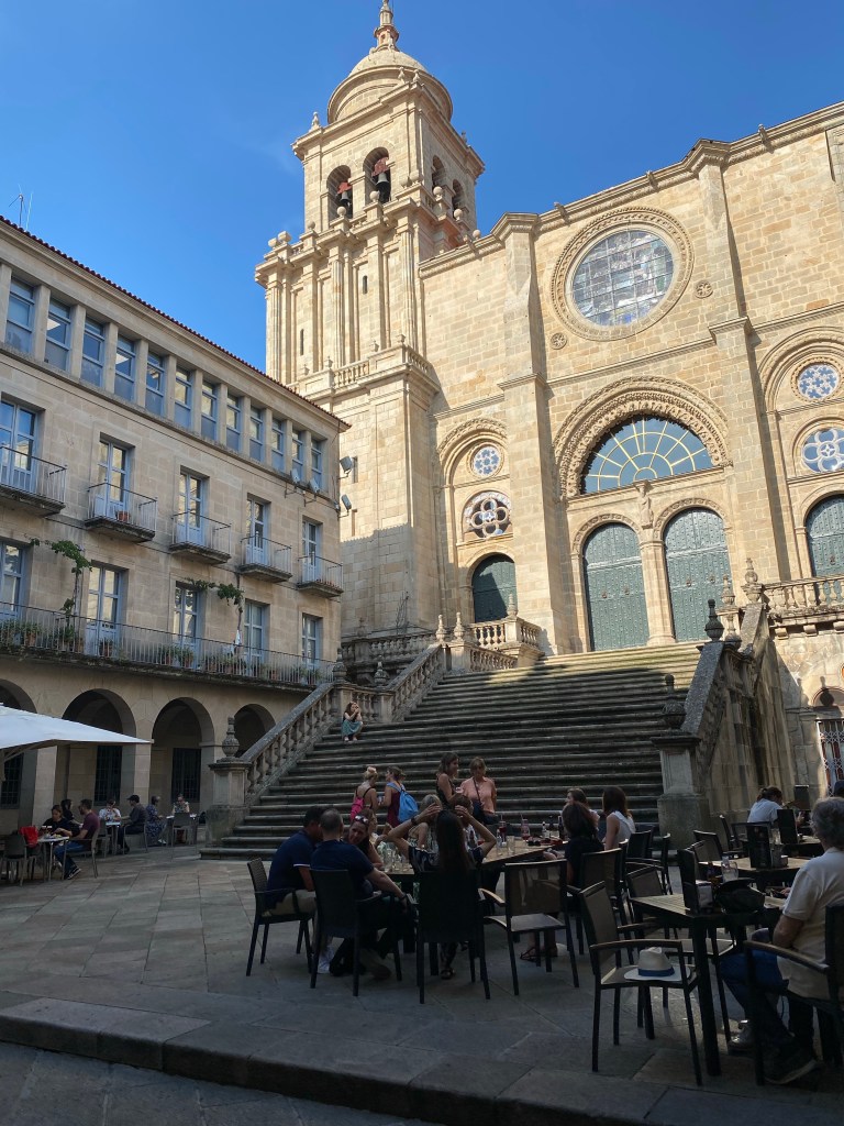 Dagens sjokolade var å møte Sunna igjen. Lang og god ettermiddag i lag med henne, etter at ho var med oss camino-vener å ete middag. Ho har bestemt seg for at ho ikkje blir med på dei siste fem etappane, av helsemessige grunnar. Veldig synd, synst eg, men helsa først. Og vi kan gjere ein annan Camino i lag seinare.