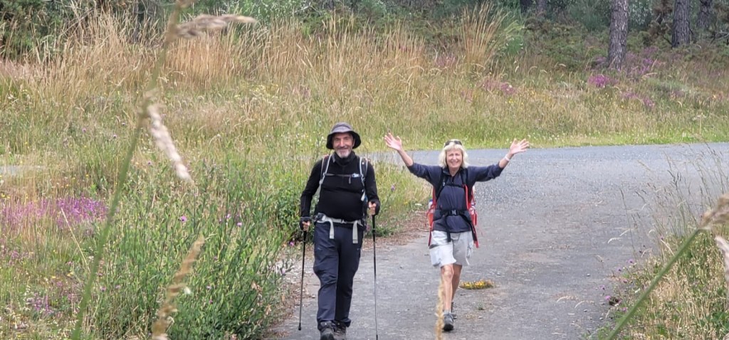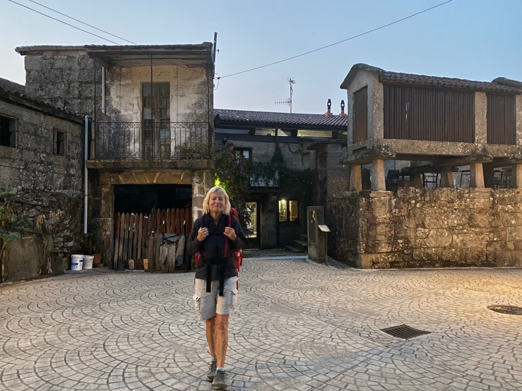 Innsjekking på Hostal, med luksus av eit nydeleg, vanleg handklede til dusjen. Lunsj på hostalet = tre rettar inkl. drikke (12€)= middag for meg👍🏻😊 Vårt gode «team» på fire inviterte med ein ire som vi traff undervegs. Han var lukkeleg, første personane han hadde snakka med sidan han forlot Ourense.