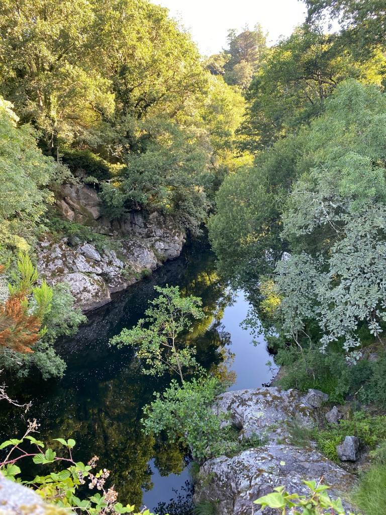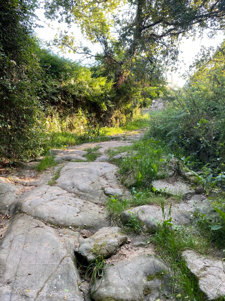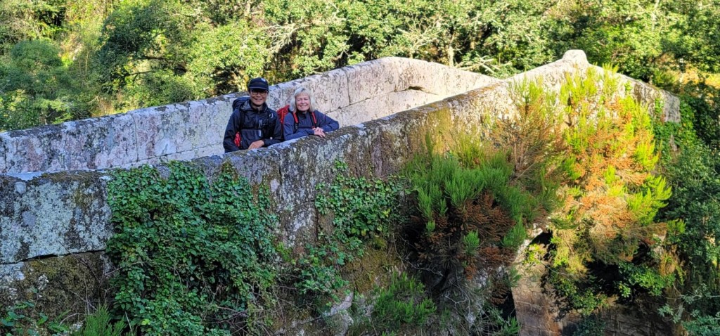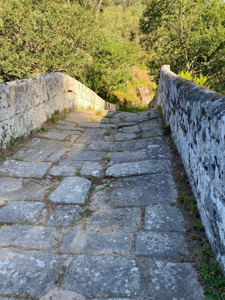 Nydeleg landskap, og flott underlag, det meste. Gjennom skog, og over ei gammal bru, frå 950 e.Kr. Brua har “overlevd” både jordskjelv og krigar, den var viktig for samferdsla i Galicia.