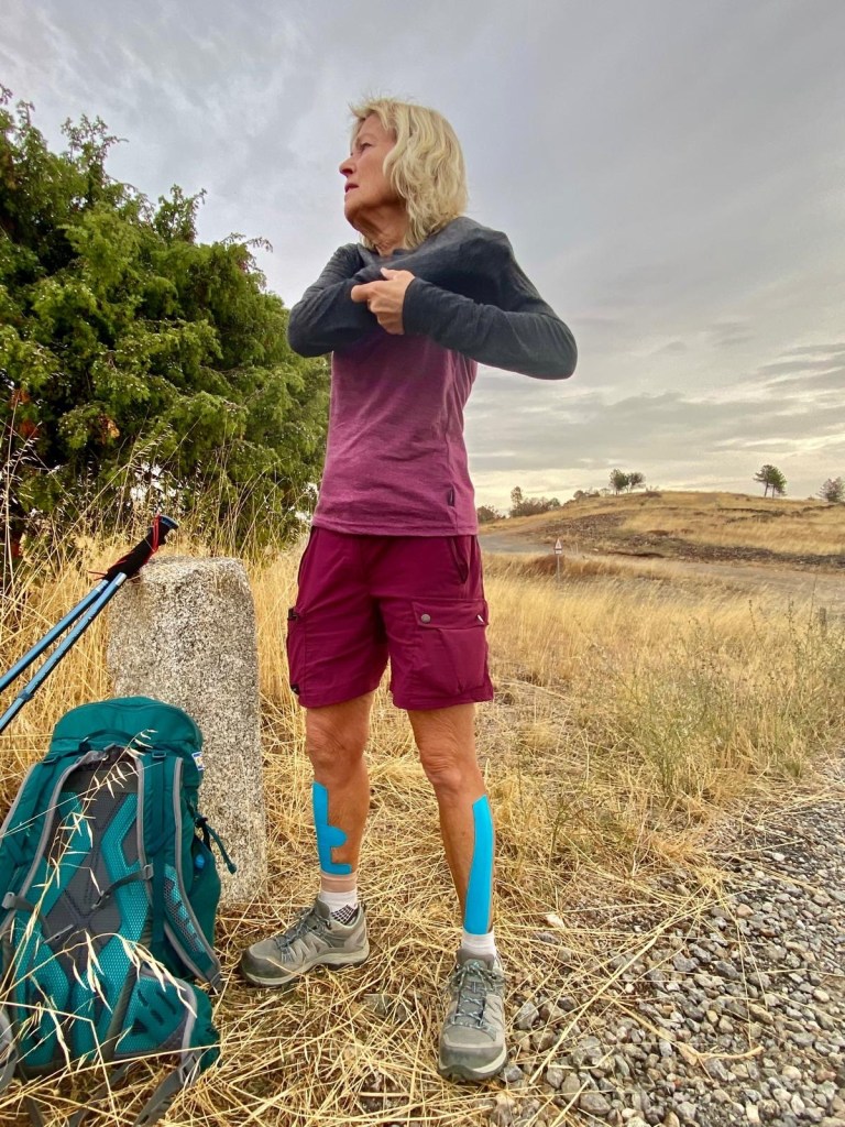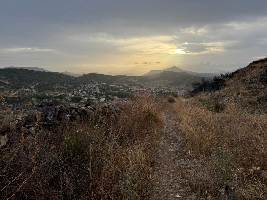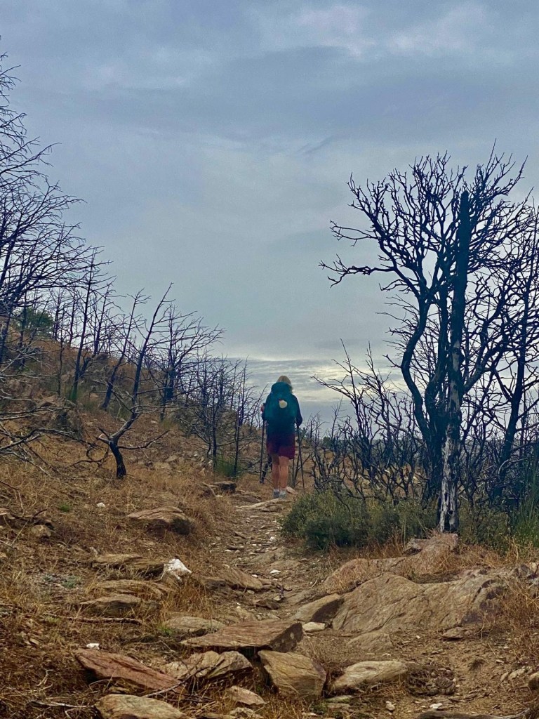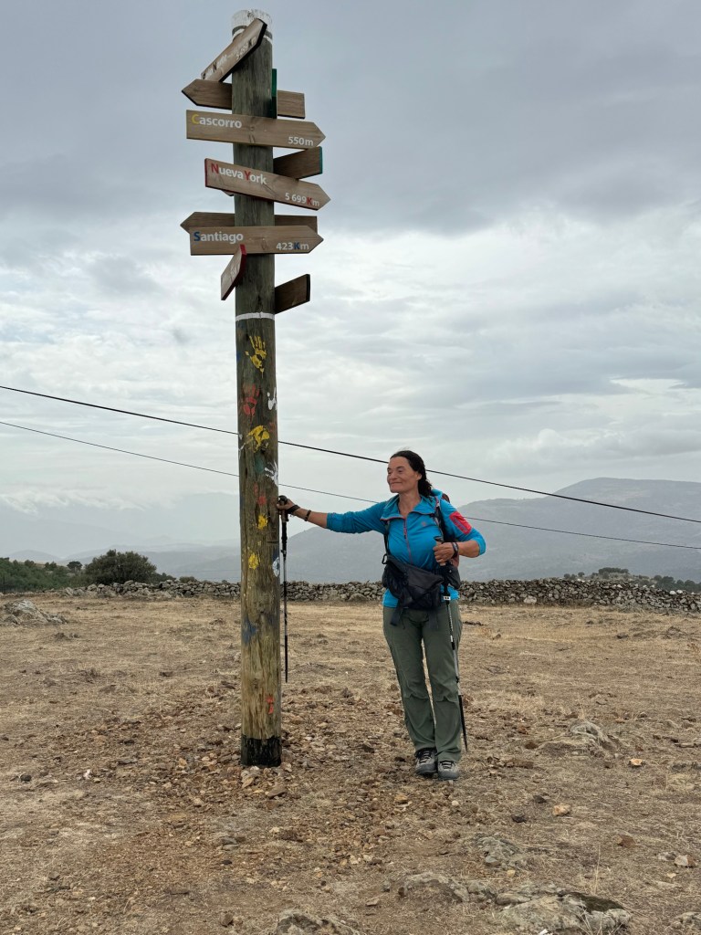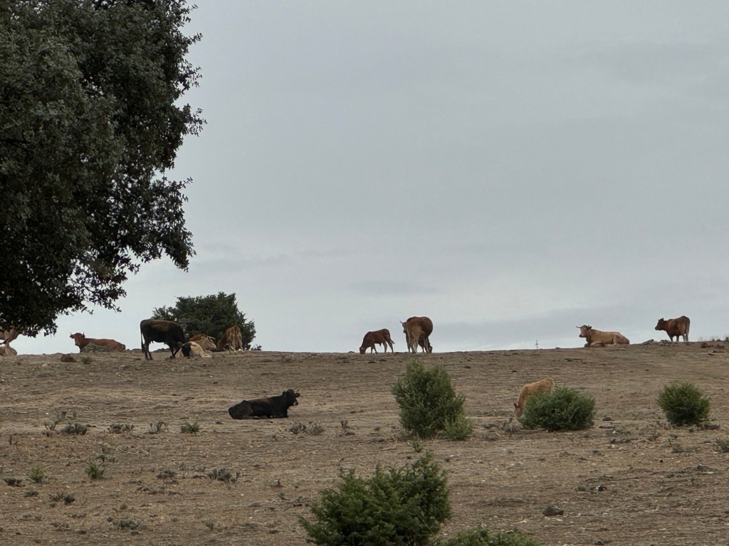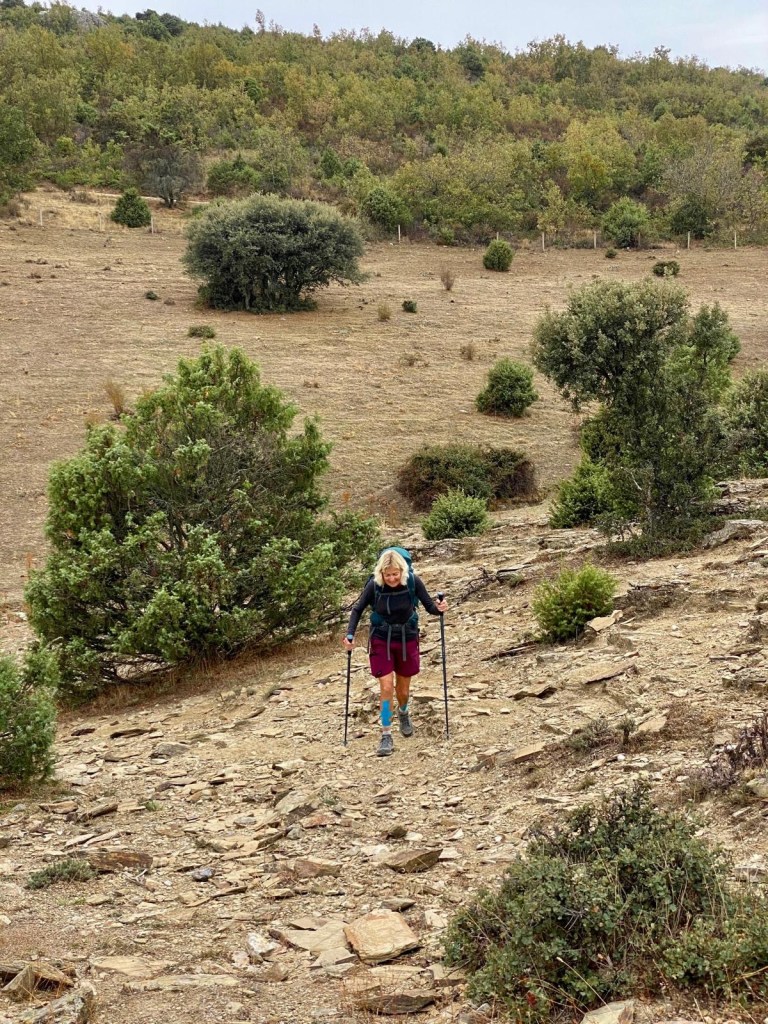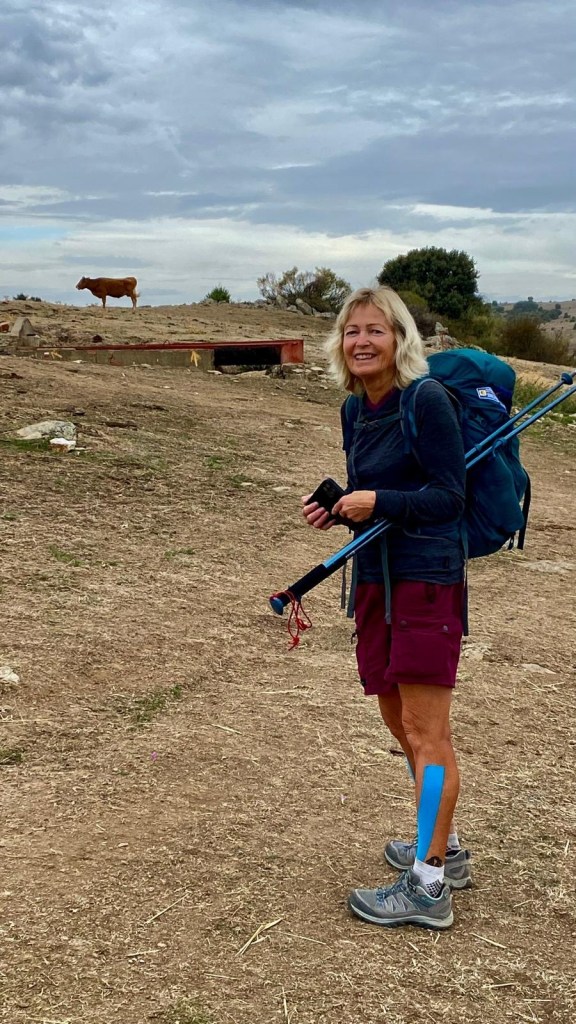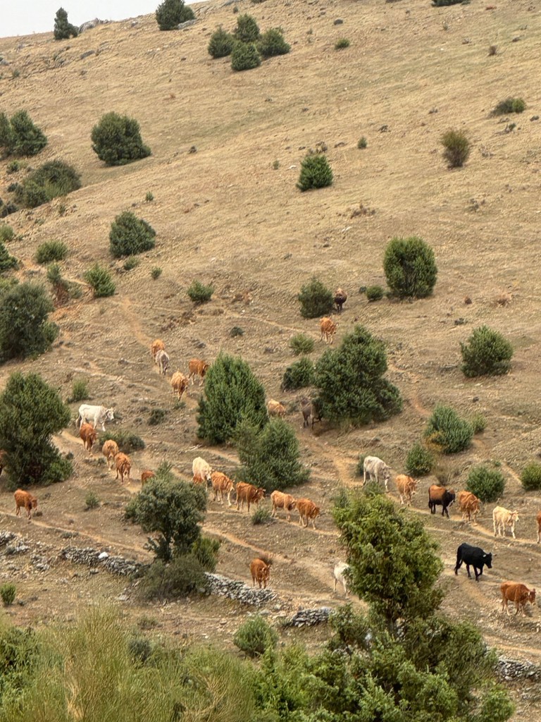 Det har vore ei flott etappe, totalt ulikt i går. Vi har vandra gjennom flokkar med beitande kyr, men lurer på kva dei finn å ete, då tørt og lite grønt som er att no på hausten. Vi var litt utrygge på kor kjekke desse kyrne var, men det gjekk fint👍🏻 Men baksida med å gå gjennom beiteland, er alle kyraruer…..
