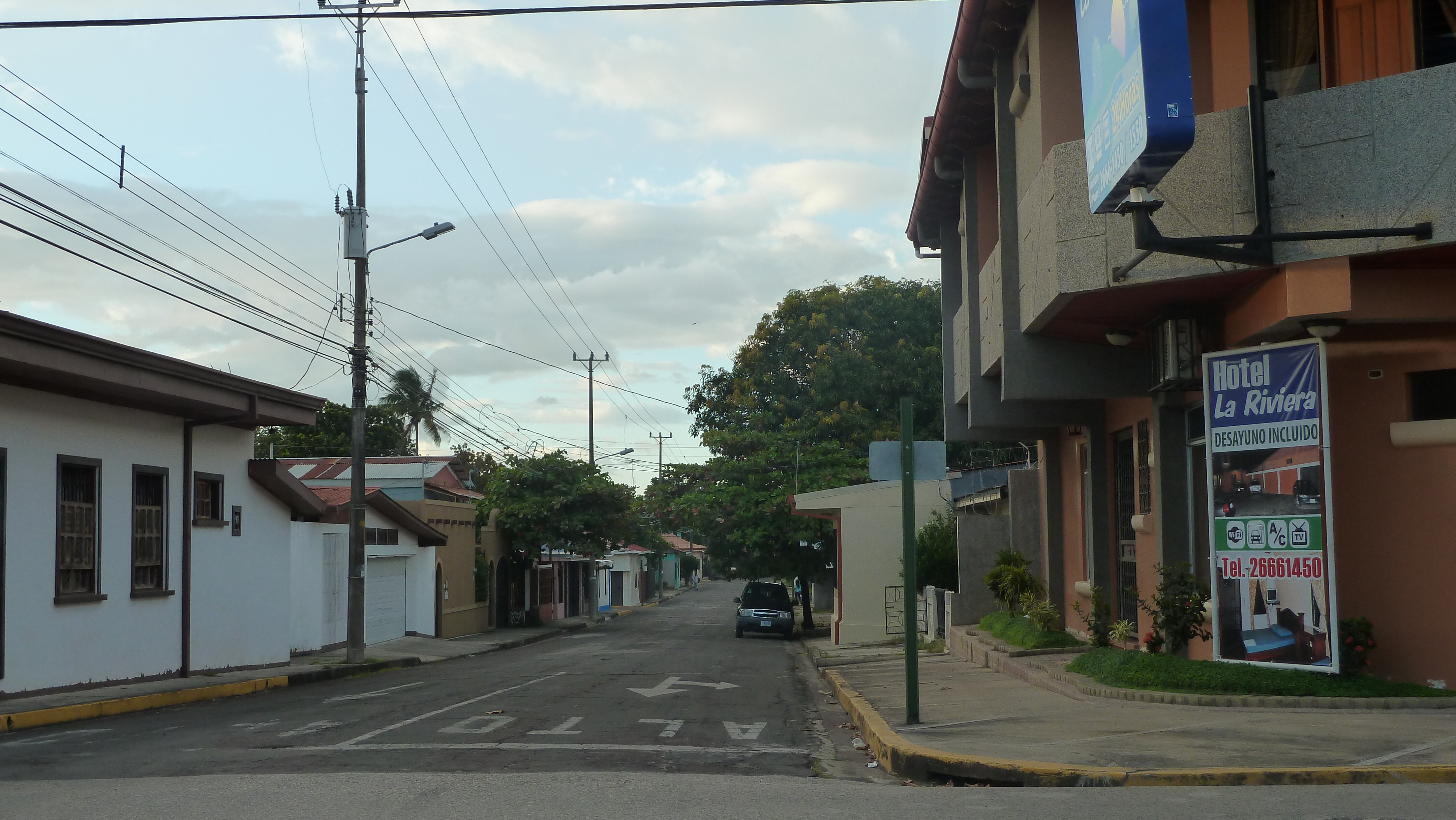 Her i det rosa huset har eg budd, (vindauget oppe t.h.), med adr: 75 meter nord for hotel La Riviera 🙂