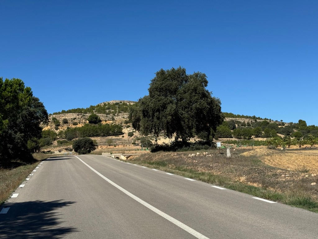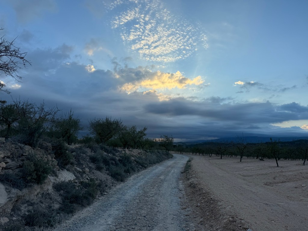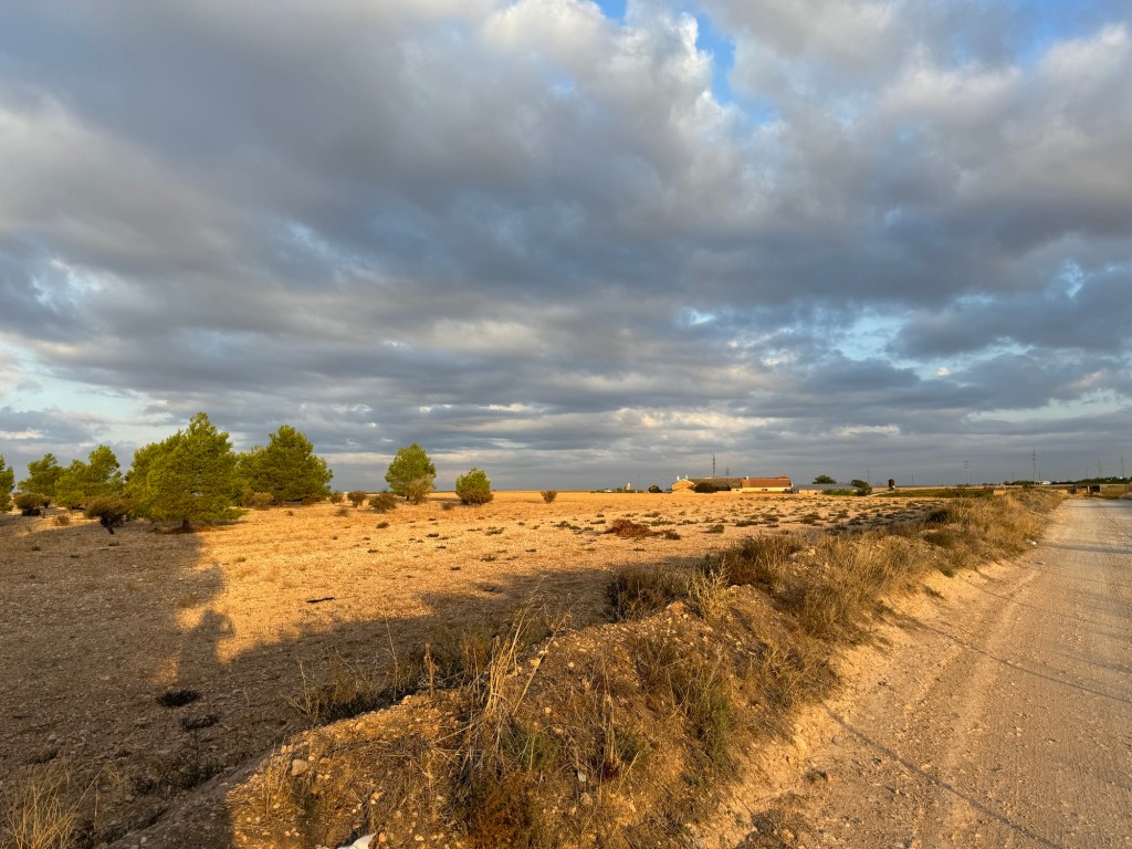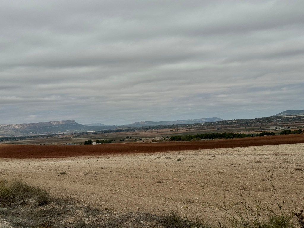 Eg var lova regn, og det kom då eg hadde 6 km att til La Roda. Og då kom det til gangs. Heile vegen fram.