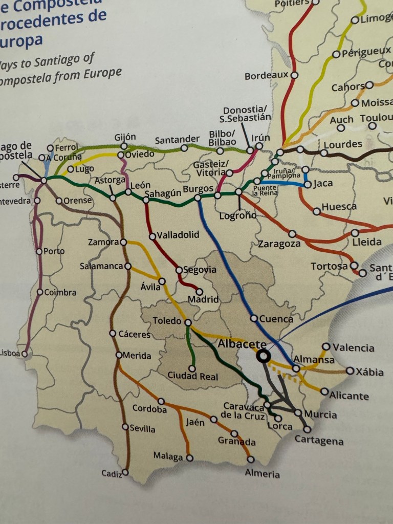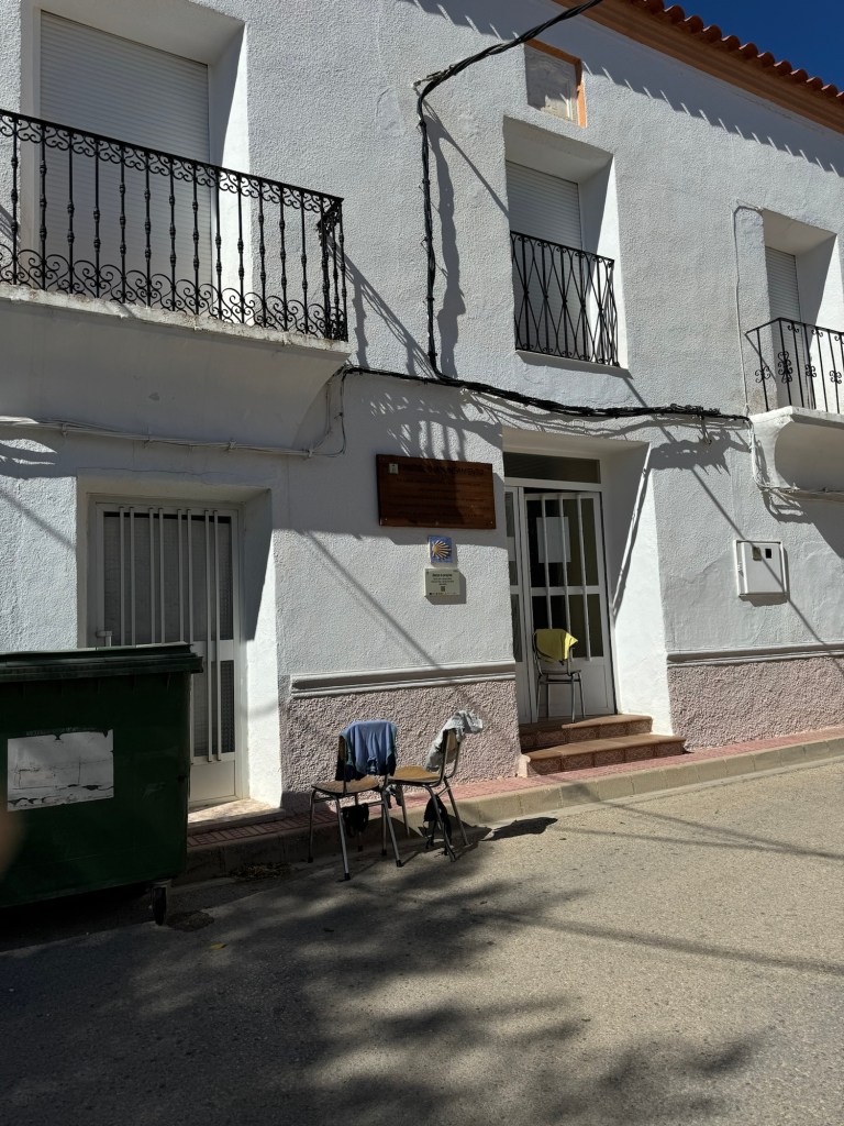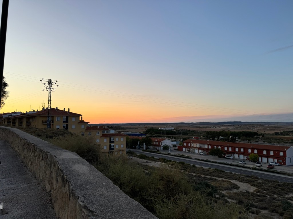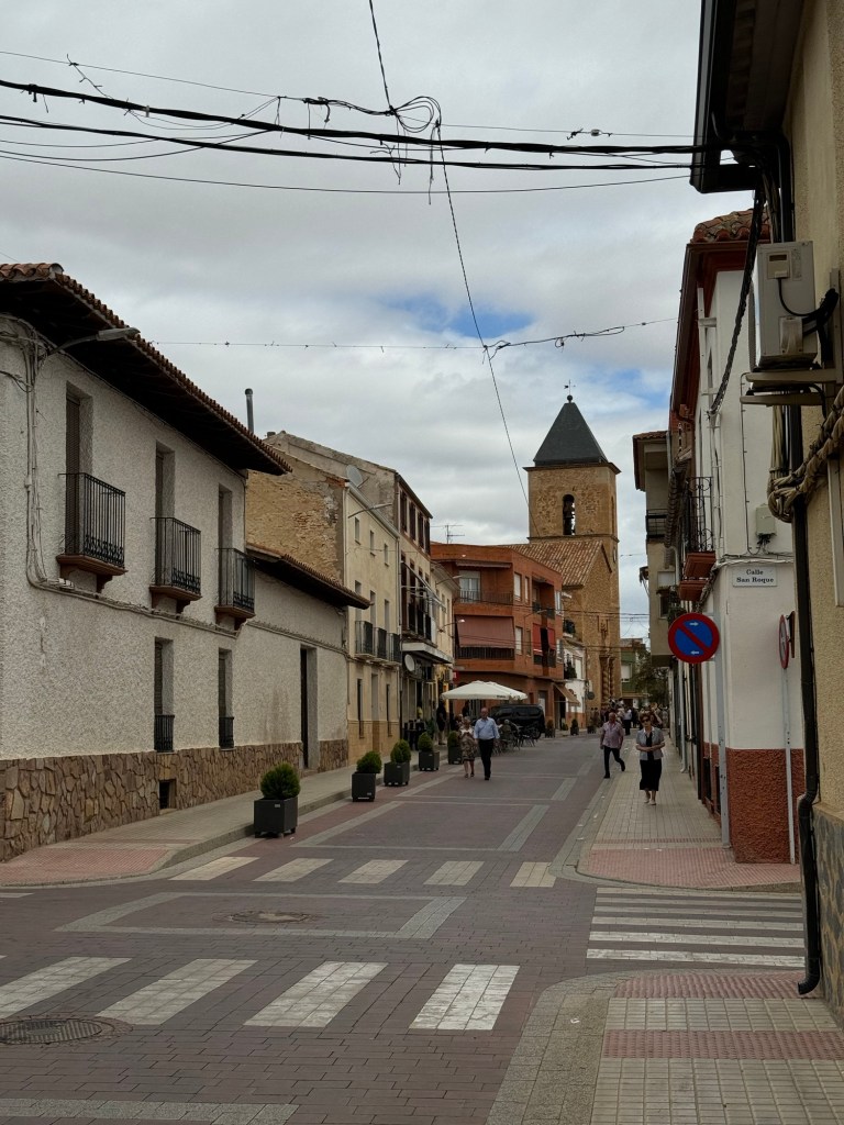 Då eg var nesten framme i byen, stoppa ein syklande pilegrim, Daniel frå Belgia. Han ville stoppe i La Roda pga regnet. Heldig for meg😊 Selskap på herberget, det var uvant, men veldig hyggeleg. Og det å kunne gå ut og ete saman, er bonus.