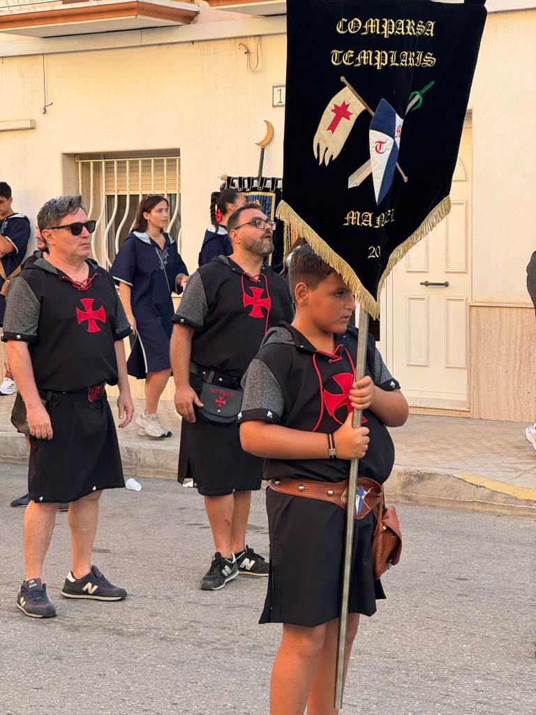 Ankom ein liten, koseleg by, Manuel, etter ca ein time, der eg fekk min etterlengta café con leche. Og eg hamna midt opp i ein fest, som tydelegvis hadde starttid kl 8 om morgonen. Veit ikkje namnet på festen, men kunne likne på liknande arrangement andre stadar i Spania, med prosesjonar med folk i ulike kostymer, eit slags spel om maurarane og spanjolane, frå 1400-talet.